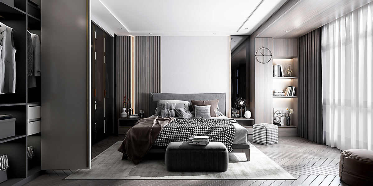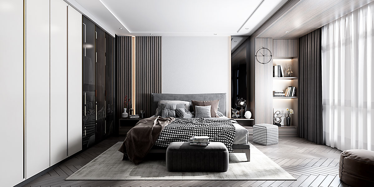 This large wardrobe uses white doors with black metal long handles, creating a minimalist modern design. An excellent wardrobe should not just be a cabinet for storage. But it should also be a magician that helps you to sort out the clothes easily. The wardrobe can be divided into men’s parts and women’s parts so that the clothes can be easily found.