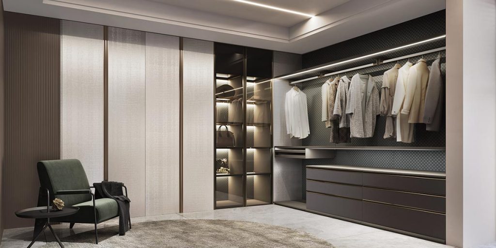 Open Wardrobe with Glass Door There are many design forms for the wardrobe. The open wardrobe with the glass door and the open glass cabinets has a variety of storage functions to meet clients’ various needs and creates a strong, cozy atmosphere of life. It shows the trend of modern fashion design. The wardrobe layout…